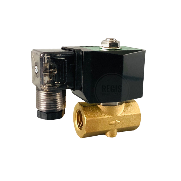 The REGIS ZS series 2-way Brass solenoid valve is a direct acting open/close electrically actuated valve for the ON/OFF control of fluids and gaseous media that are compatible with the materials of construction.